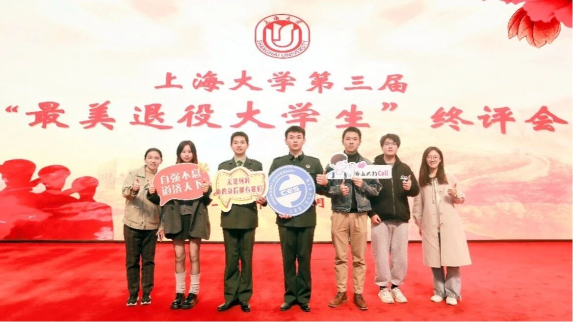2023年11月29日上午,经前期报名、网络评选,上海大学第三届“最美退役大学生”终评会在图书馆报告厅举行。在本次评选活动中,我院有两位本科生脱颖而出:2020级本科生王昭同学荣获上海大学“最美退役大学生”称号,2022级本科生苏思远同学荣获“最美退役大学生”提名。